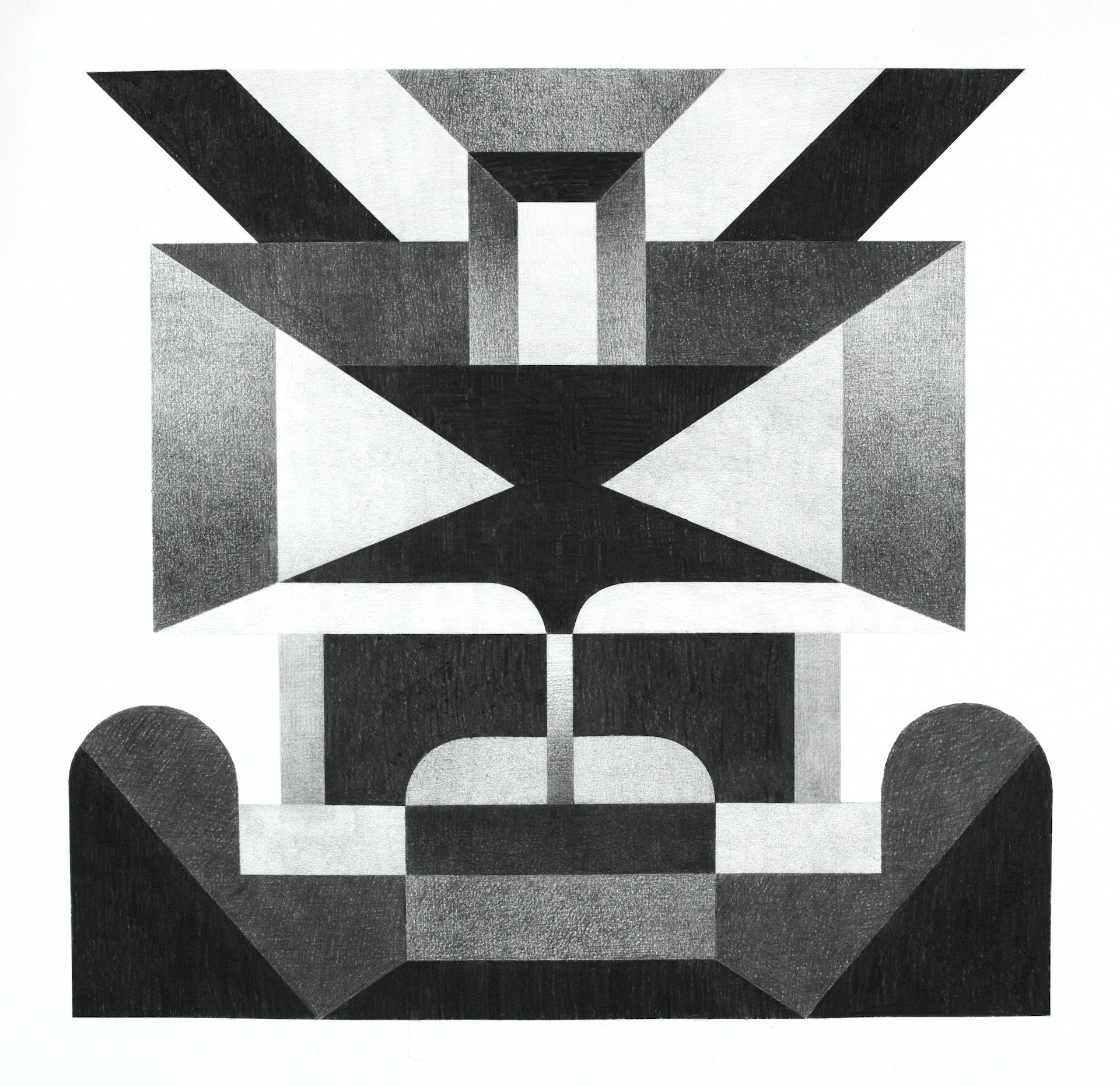 Light and dark create the illusion of depth. The gradients suggest volume where there is none. It is a study of how shadow defines a surface.